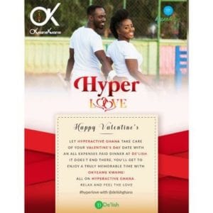 On Vals Day, De’lish Restaurant, a fairly new restaurant on the Okponglo-Bawaleshi Road in Accra, is hosting couples to a Vals Day treat at only GHS 150.
